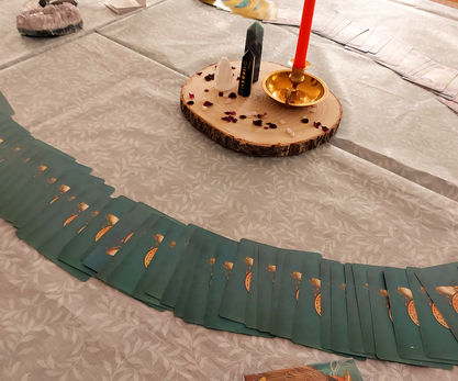 Under hela eftermiddagen finns det orakelkort, tarot, runor, pendel, kristaller, pekare och andra magiska redskap utspridda för att utforskas. Du får känna, dra kort, ställa frågor - och jag finns där med öppenhet, inspiration och vägledning.